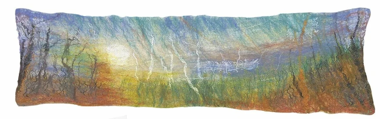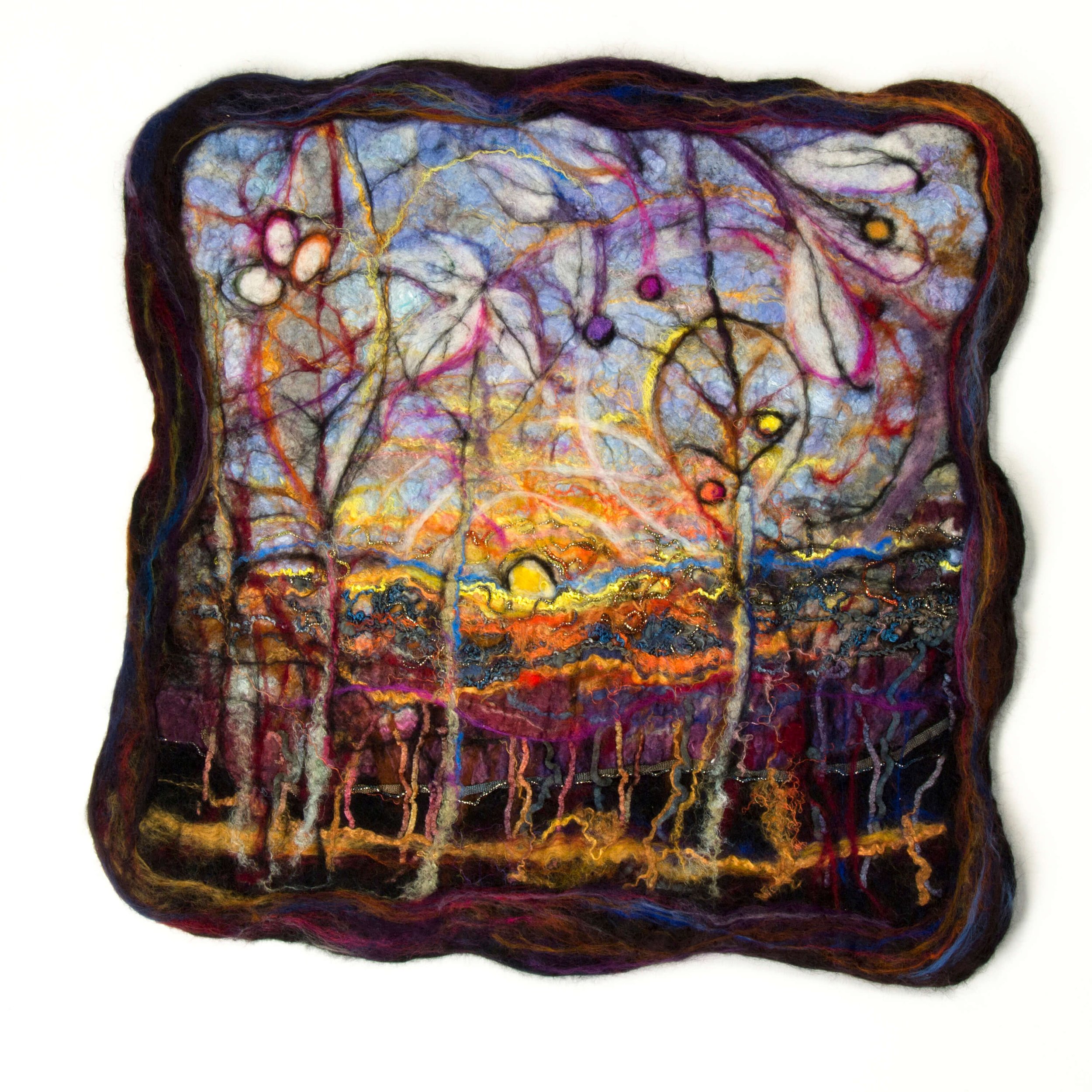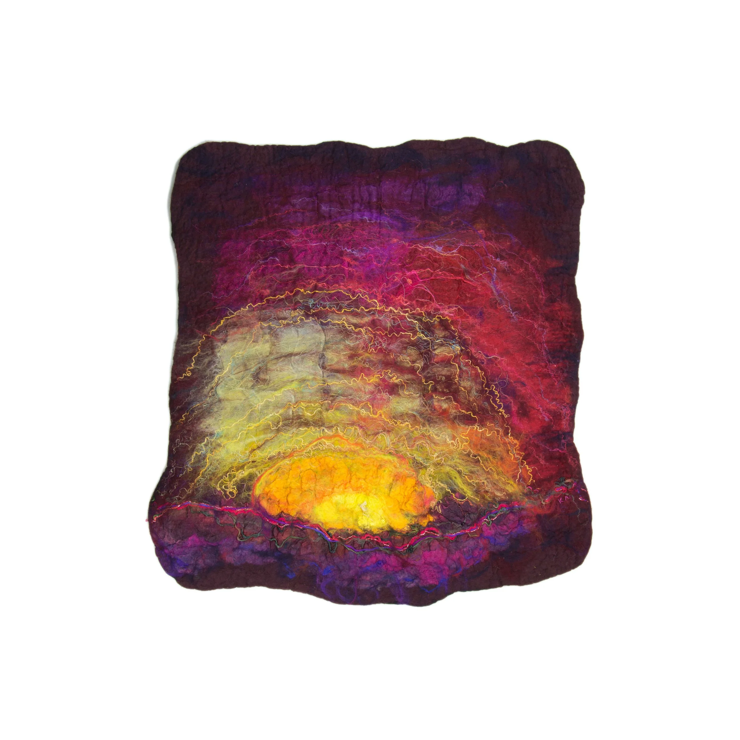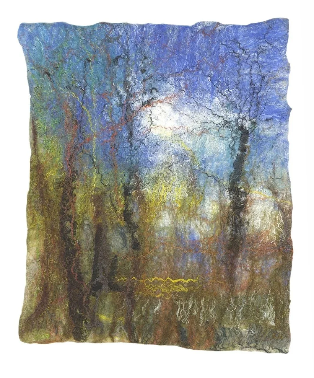 Kanj's passion for felted textiles extends her painting practice, allowing her to "paint" with fibres instead of traditional paints. Using the wet felting technique, she creates textile art that has evolved organically through years of exploration and experimentation. Committed to refining her craft, she continues to develop her techniques, expand her skills, and share her expertise through workshops.