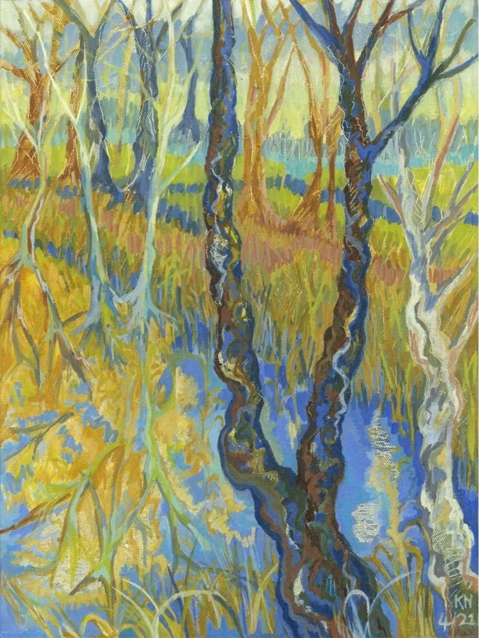 Kanj embraces oil painting as a meaningful avenue for artistic growth, continually refining her techniques and skills. She is particularly drawn to painting en plein air, where direct observation of nature allows her to capture its colors, textures, and forms in an impressionistic style. This practice reflects her dedication to deepening her connection to the natural world through her art.